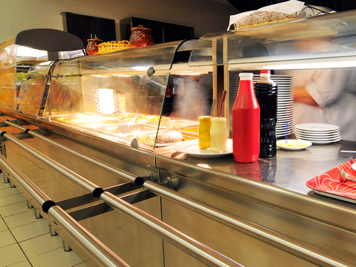 Полка над мармитом служит для выкладки порционных блюд и имеет лампу подстветки. Блюда удобно брать и ставить с любой стороны полки.